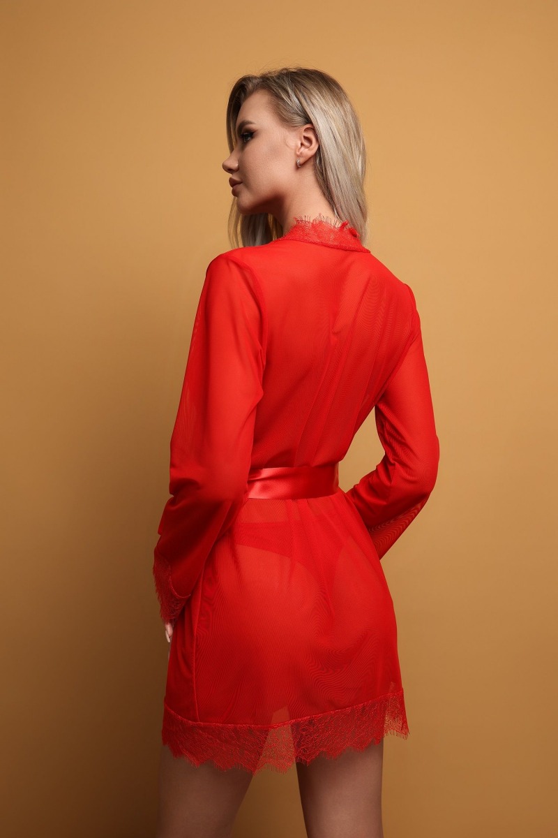 Красный пеньюар с кружевной отделкой. С поясом с атласным блеском.