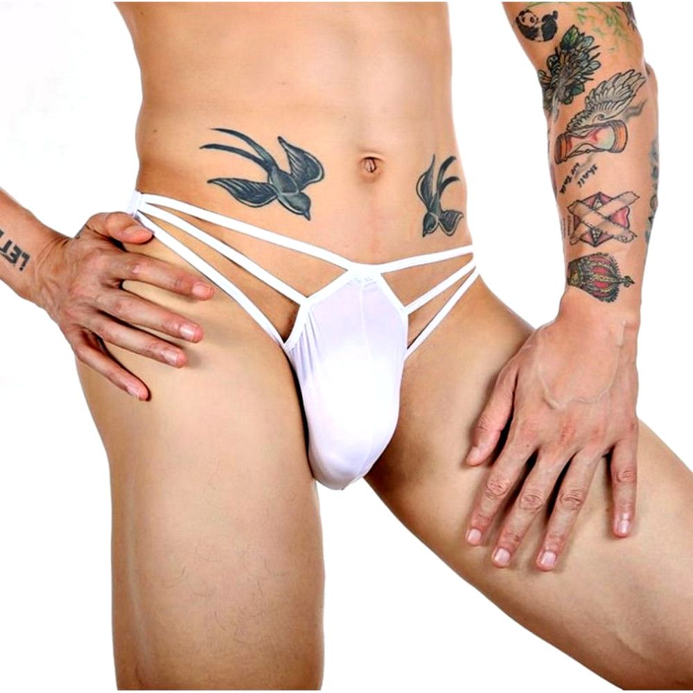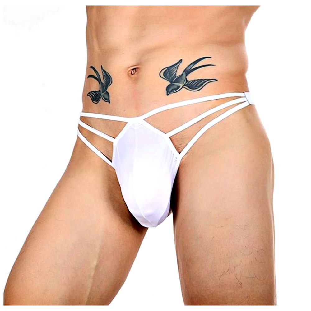 Белые сексуальные трусы-стринги на тонких бретелях.