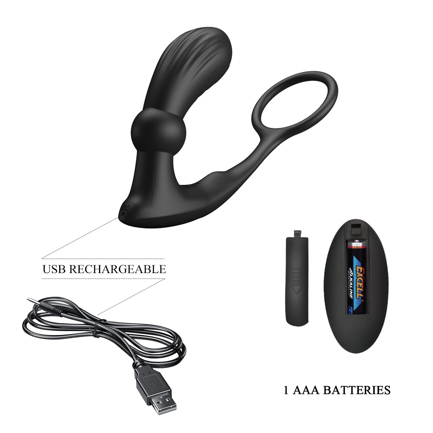 Черный вибростимулятор простаты Warren с эрекционным кольцом. Анальная пробка с особым изогнутым дизайном имеет 12 режимов вибрации и 12 настроек пульсовой волны, обеспечивающих интенсивную стимуляцию ануса. Пробка покрыта силиконом, который имеет приятную на ощупь текстуру. Беспроводное дистанционное управление. Рабочая длина - 8 см.