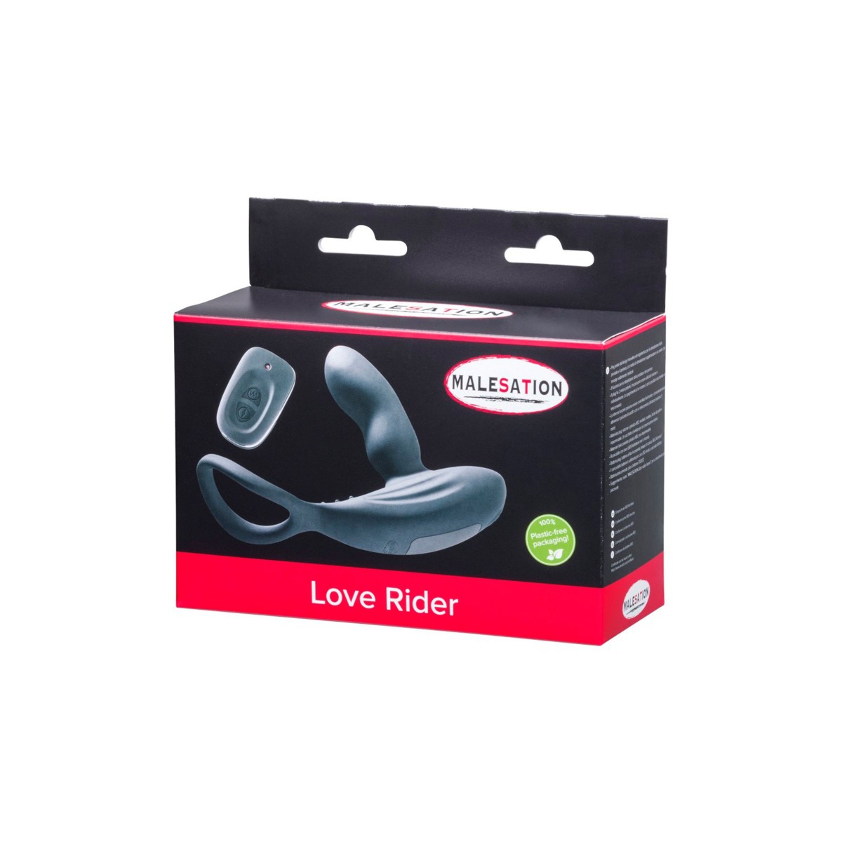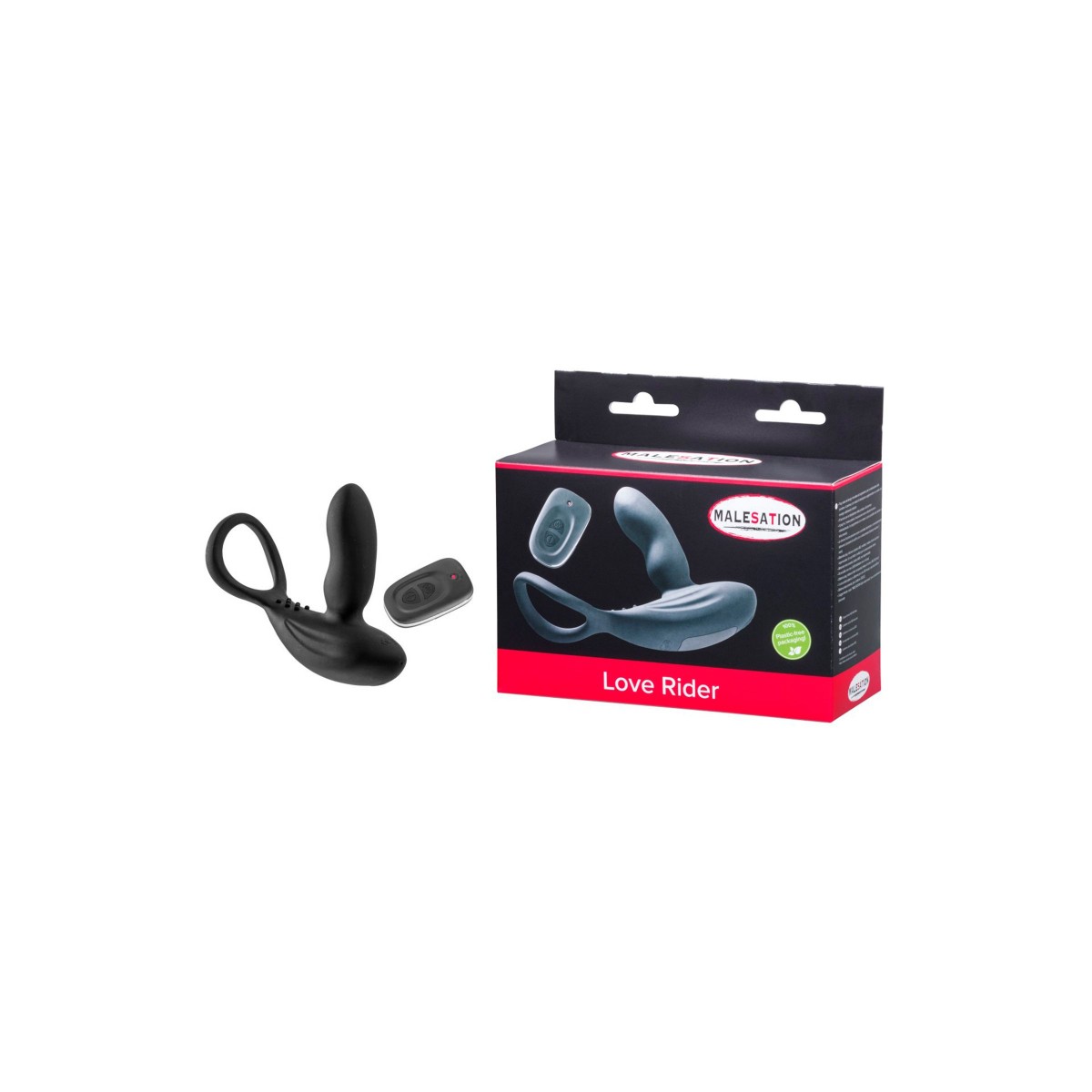 Стимулятор простаты с эрекционным кольцом Love Rider MALESATION – это мощное устройство для мужской стимуляции, созданное для глубокого удовольствия и максимального комфорта. Его эргономичный и креативный дизайн обеспечивает точную стимуляцию простаты и промежности, а дополнительное рельефное покрытие с мягкими шипами усиливает ощущения. Кольцо плотно охватывает мошонку (или мошонку и пенис вместе), что усиливает эффект и дарит длительные, интенсивные оргазмы. Втулка, анатомически изогнутая для точного попадания в зону простаты, делает процесс использования невероятно комфортным и эффективным. Устройство оснащено двумя мощными моторами, которые можно использовать как одновременно, так и по отдельности, регулируя их работу с помощью удобного пульта дистанционного управления. Вам доступны 11 функций вибрации для стимуляции простаты и промежности, что позволяет экспериментировать с различными режимами и находить идеальное сочетание для максимального удовольствия. Радиус действия пульта – до 5 метров, что открывает множество вариантов как для соло-игр, так и для игр с партнером. Love Rider MALESATION изготовлен из мягкого, безопасного силикона и АБС-пластика, что делает его приятным на ощупь и полностью гипоаллергенным. Водонепроницаемость позволяет использовать его не только в спальне, но и в душе. Устройство легко чистится, что обеспечивает гигиену и долговечность. Для работы стимулятора предусмотрен перезаряжаемый литиевый аккумулятор, который заряжается через USB-кабель. Полная зарядка занимает 3-4 часа и обеспечивает до 150 минут работы в зависимости от режима использования. Диаметр кольца для мошонки – 4,8 см.