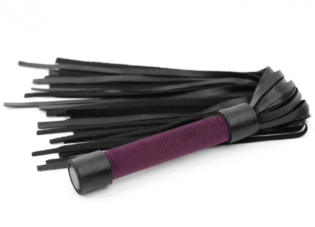 Красота и власть – эти слова точно могут охарактеризовать это изделие. Ручка приятная на ощупь, выполнена из бархатистого велюра, идеально располагается в руке. Хвосты плети изготовлены из гладкой эко-кожи, создают звонкий шлепок и нежны к коже. Этот аксессуар необходим каждому, кто желает внести новые яркие краски в отношения. Длина хвостов - 27 см.