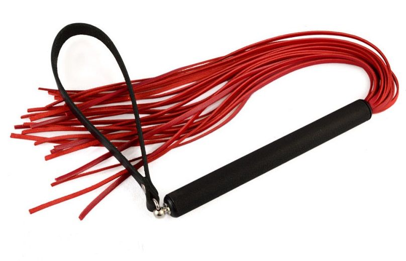 Небольшая плеть с хвостом из тонких лент натуральной кожи. Металлическая рукоять цилиндрической формы. Длина рукояти - 15 см.