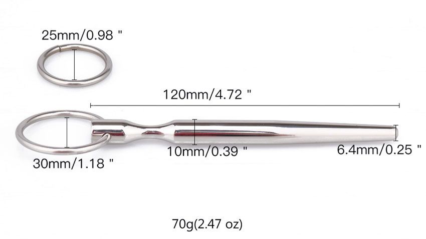Уретральный катетер для стимуляции уретрального канала. Мужской катетер изготовлен из высококачественной медицинской стали, имеет рельефную структуру. Рабочая длина - 11,3 см. Минимальный диаметр - 0,64 см. Вес - 70 грамм.