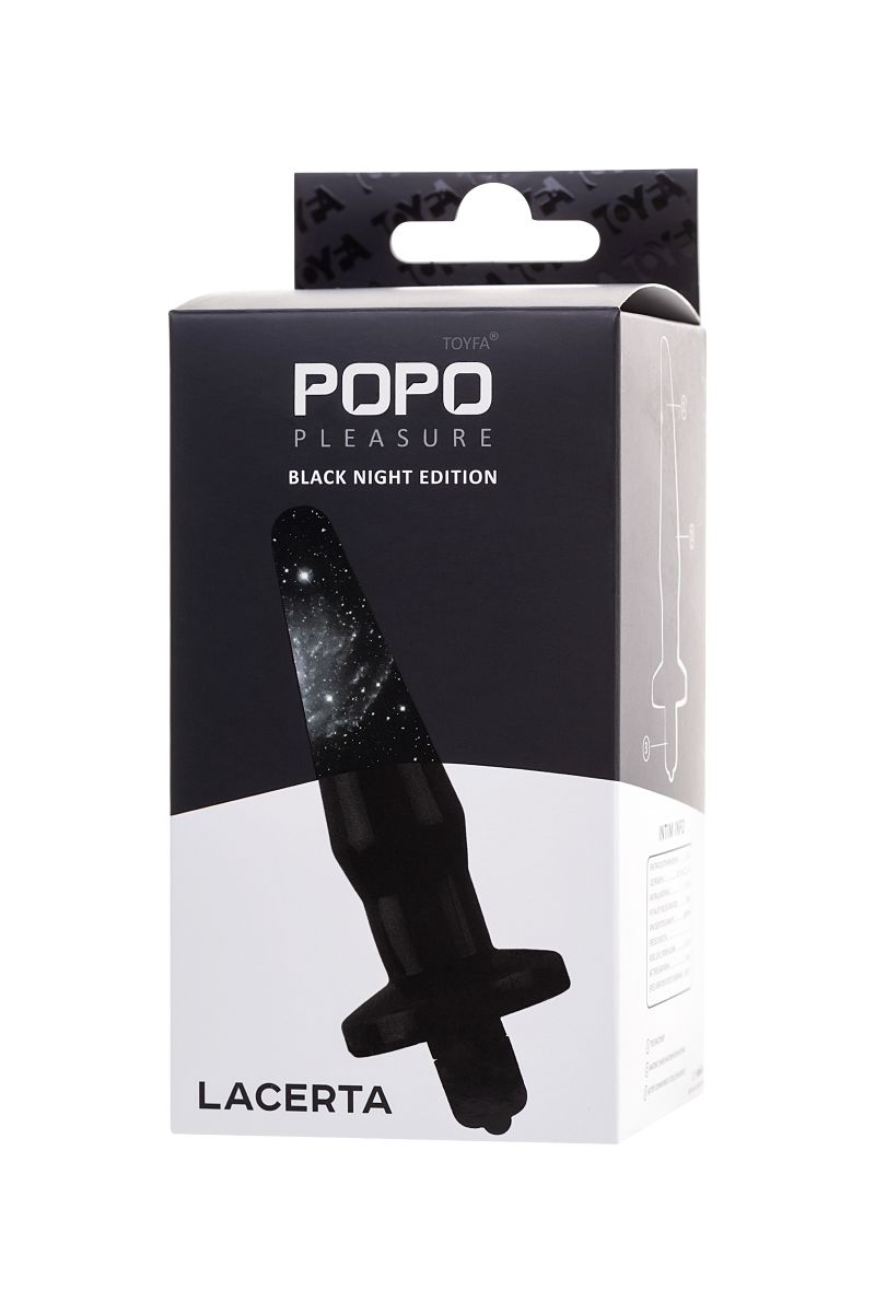 Черная анальная втулка Lacerta с вибрацией. Конусовидная форма, гладкая поверхность.