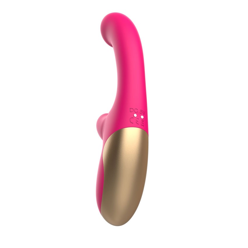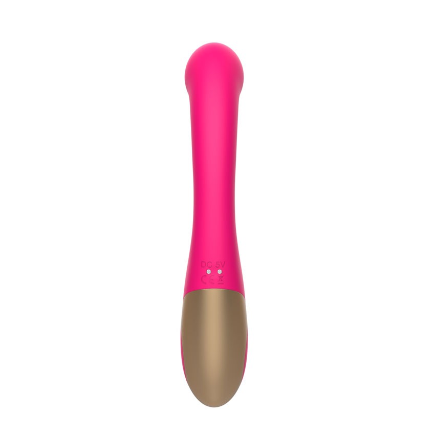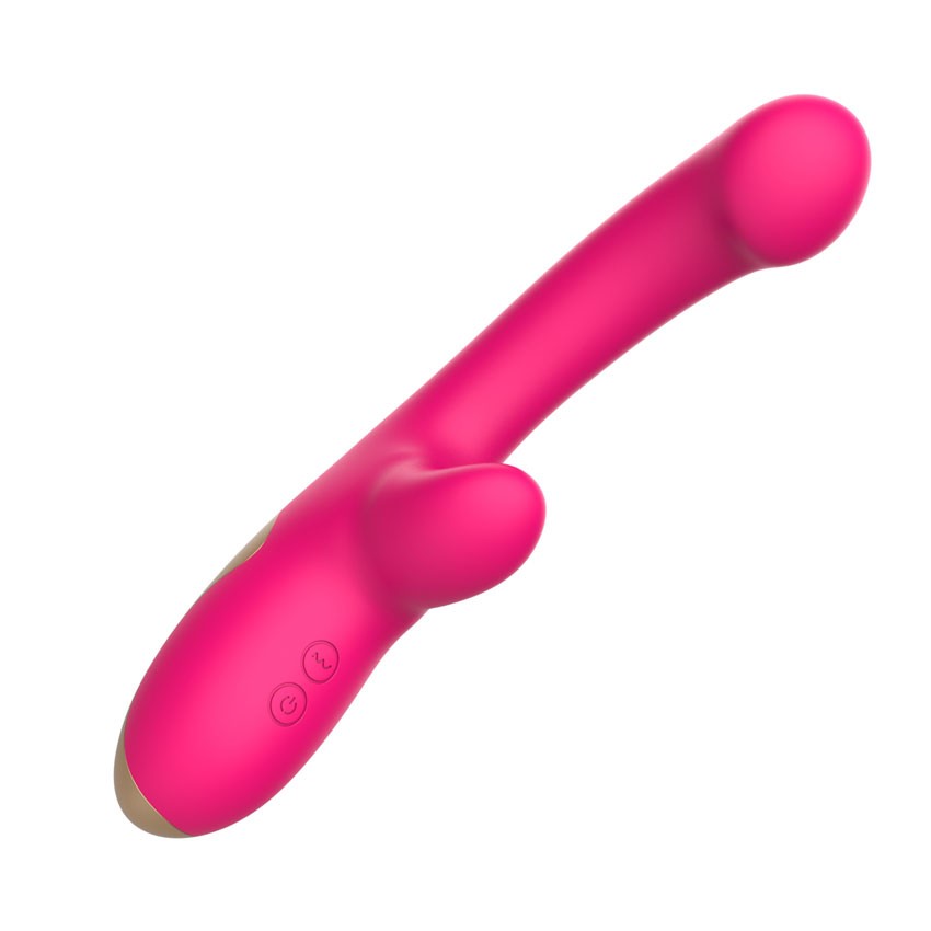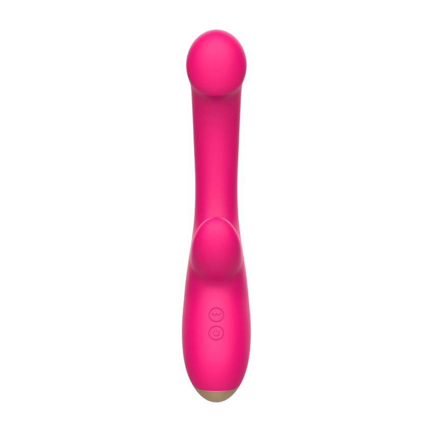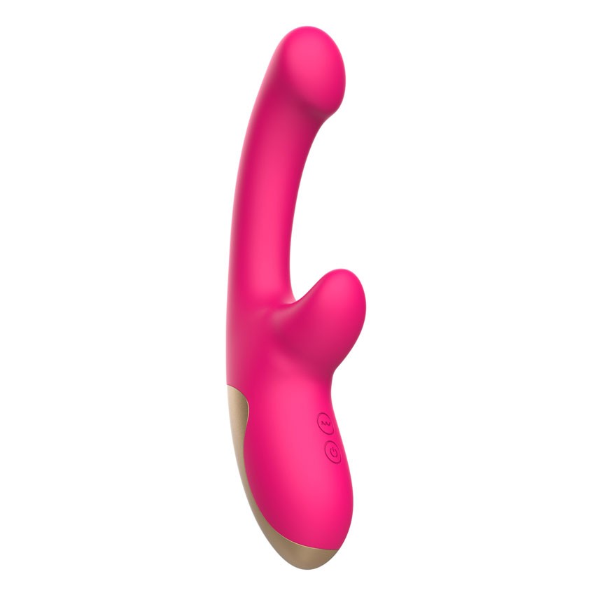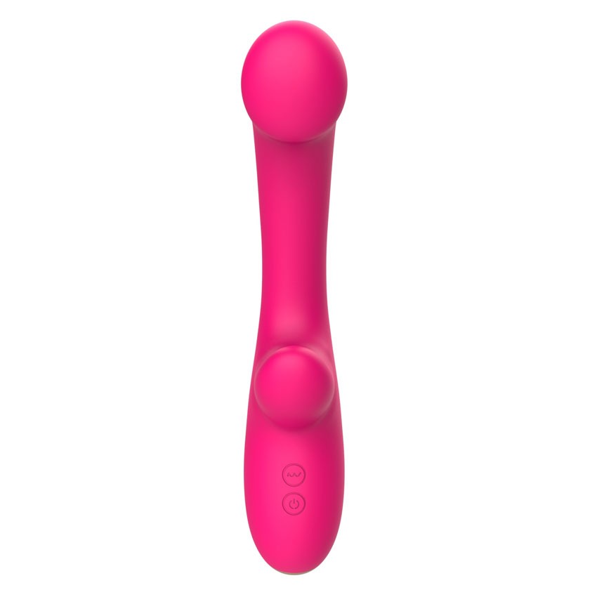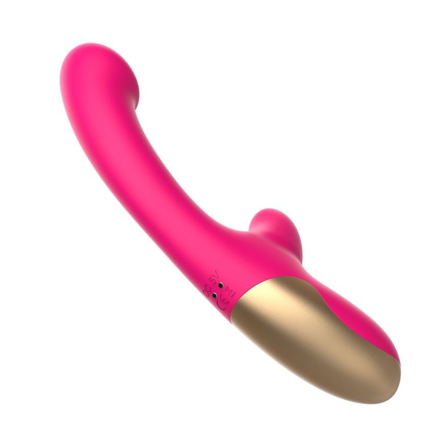 Розовый изогнутый вибромассажер. С коготком для клиторального массажа. 10 режимов вибрации. Рабочая длина - 11,4 см.
